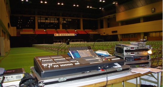 1/15、葛飾区の成人式の音響・照明をやってきました。今年は葛飾区のホールが改修工事とかで使用できないので会場をスポーツセンターへ移し成人式を行いました。13日仕込み、14日リハーサル、そして15日本番と3日間葛飾区にありますスポーツセンターに通ってきました。(遠い!)約2000名近く入るということでお取引のある会社へお願いしました。