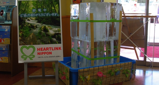 7/18、関越自動車道の高坂SA(上下)、上里SA(上下)と4箇所のSAで「氷柱」の設置を実施しました!震災の影響でサービスエリアも冷房の温度を少し上げてますので、休憩中のお客様に少しでも「涼」を感じていただくために「氷柱」を設置しました。